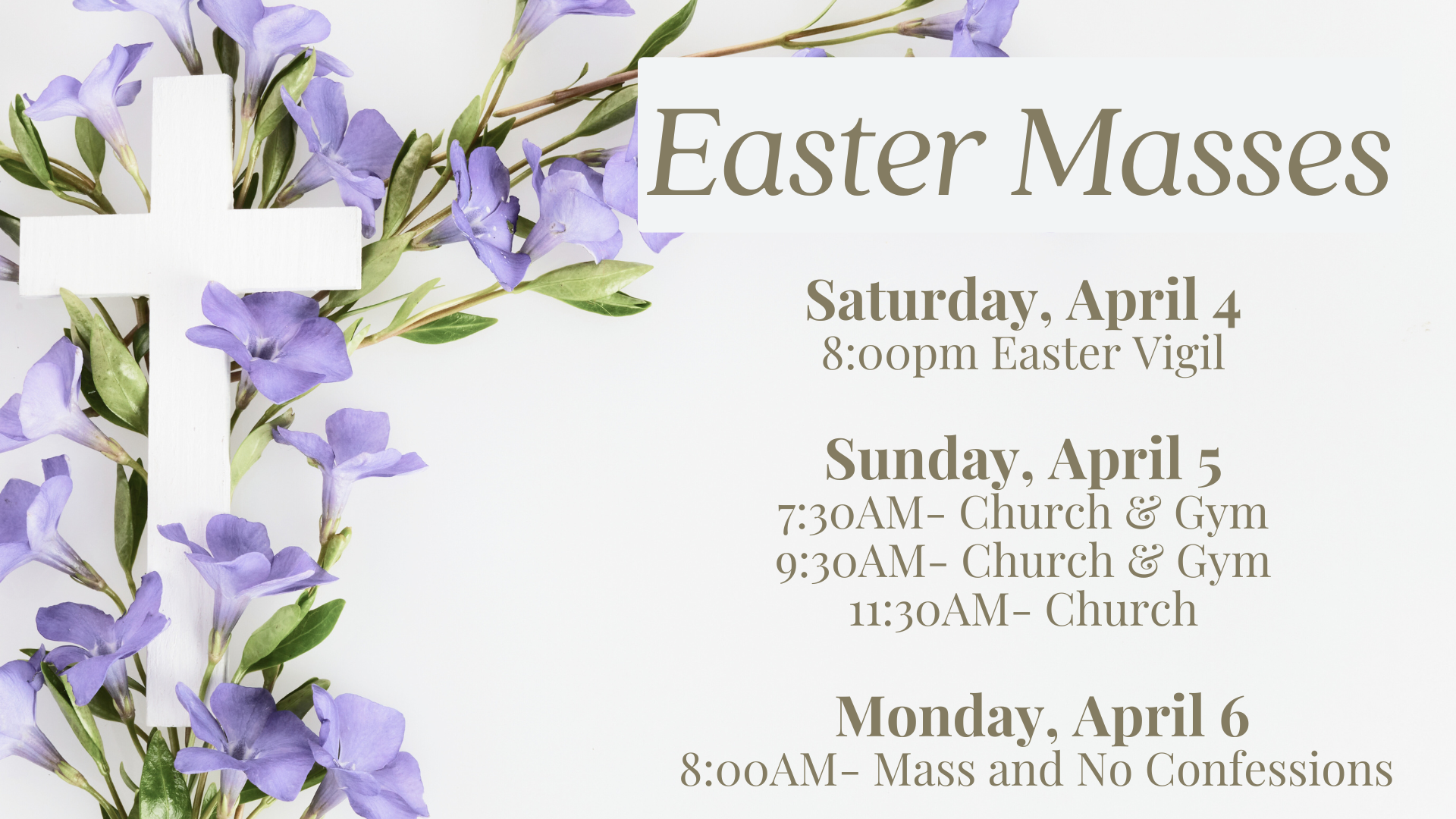 - Masses: 7:00am, 12:10pm, 5:30pm and 7:00pm